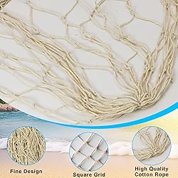 【High-Quality Material】: Crafted from durable, high-quality fishing net material, these Fish Net Decorations are built to last. Whether you hang it indoors or outdoors, they will withstand the test of time and weather, offering long-lasting beauty 【Easy to Hang & Style】: This Fishing Net Party Decor is designed for easy installation. Simply hang it on your wall, whether it’s for a pirate decoration, coastal room decor, or adding the perfect touch to any room’s theme. Transform your space with minimal effort and maximum impact 【Ocean-Themed Decoration】: Transform your space with our Decorative Netting, perfect for beach-themed room decor, ocean-themed party decorations, or creating a nautical ambiance. Ideal for hanging on walls, creating the perfect atmosphere for any coastal-inspired setting 【DIY Your Own Ornament】: Unleash your creativity by combining this Nautical Wall Hanging Fishing Net with seashells, starfish, anchors, sailboats, lighthouses, and various marine-themed ornaments to create a stunning nautical display. 【Versatile Home Decor】: Use the Nautical Fishnet in a variety of rooms including bedroom, bathroom, or living room. This versatile piece adds a unique touch to your coastal home decor, bringing the relaxing feel of the beach right into your home.