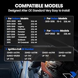 【Multivehicle Compatibility】Compatible with Subaru (H4 2.0L): 2015-2020 BRZ/WRX, 2017-2018 Forester, 2015/2016-2017 Crosstrek/XV Crosstrek; (H4 2.5L): 2015-2019 Legacy/Outback, 2015/2017-2018 Forester. Compatible with Toyota 2017-2020 86; Compatible with Scion (H4 2.0L): 2015-2016 FR-S. Check product images/descriptions or contact us for fitment confirmation. 【OE Standard】UF747, UF767, UF769, UF774, UF775, 22433-AA70A, 22433-AA70B, 22433-AA700, 22433-AA730, SU003-05259, UF-747, UF-767, UF-769, UF-774, UF-775 and others. Designed to meet or exceed OEM specifications for form, fit, and performance, these ignition coils are engineered for seamless replacement in your vehicle PREMIUM IGNITION COIL MATERIALS: Precision-engineered with silicon steel cores, German enameled copper wiring, Japanese epoxy resin, and reinforced rubber sleeves for heat/voltage resistance. Built to prevent cracking, shorts, and premature failure. 【Strict Quality Test】 In order to solve common ignition system faults such as backfiring, misfiring, stalling, car shaking, engine jerking, poor idling, clogged spark plugs, poor fuel economy, check engine light illuminated etc. All ignition coil packs are tested under strict quality control to ensure that the coils can output high voltage stably and work reliably under operating conditions and throughout the engine speed range, which brings you a comfortable driving experience. 【What You Get】You can get a package including ignition coil *4, manual *1. Our coil packs meet or exceed OE specifications for form, fit and function and are perfect for automotive replacement ignition coils. SYKRSS ensures you with an 24-month pleasant experience and top customer service. Please feel free to let us know if have any questions about this coil pack set.