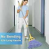 HiBaby Commercial Mop with Extra Head Replacement, 63Inch Handle Heavy Duty Industrial Mop Looped-End String Wet Mops for Floor Cleaning for Warehouse, Workshop, Garage, Office, Home (2 Mops Head)