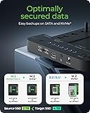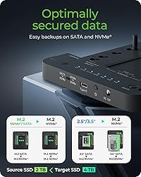 Tool-Free, Hassle-Free Installation: No matter whether 2.5", 3.5" HDD or M.2 SSD: Thanks to our innovative design, hard drives are easily inserted into the designated bay - no tools are needed One-Touch Offline Cloning: No need for a computer! With built-in cloning functionality, easily copy data from NVMe/SATA to NVMe or SSD/HDD to NVMe with a simple switch. Monitor progress via the LED indicator. This feature is ideal for rapid backups. Note: Ensure that you back up data on the target disk before cloning to prevent data loss (the target disk must be larger than the source disk) Unlimited Compatibility: The Docking Station makes cloning 2.5"/3.5" HDD/SSD or M.2 SATA or PCIe NVMe SSD to M.2 PCIe NVMe SSD easy. Experience uncomplicated data backup or system acceleration by moving to SSD with just one push of a button. Compatible with Windows, Mac, and Linux operating systems, it can connect to PCs, laptops, smart TVs, PS4, XBOX, and more for seamless storage expansion High data transfer rate: with USB 3.2 Gen 2 and the included USB Type-C/Type-A cable, you will experience data transfer that is not only fast, but also impressively efficient and offers transfer rates of up to 10 Gbit/s. significantly reducing file transfer and backup time. Perfect for gaming, media editing, and large data transfers Advanced Open-Frame Cooling Design: The open-frame structure maximizes surface contact with ambient air, ensuring continuous, efficient heat dissipation and stable high-performance operation—even under heavy workloads. What You Get: M.2 NVMe & SATA SSD/HDD Docking Station, 2 in 1 Cable (USB C to USB C & USB C to USB A Cable), Power adapter, 3x M.2 rubber fixation, 24-month warranty, and our friendly customer service to solve your problems timely.