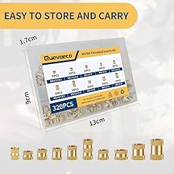 Designed for 3D Printing Applications – These brass threaded inserts are ideal for embedding into 3D-printed parts using a soldering iron or ultrasonic tool. Perfect for printers like Creality, Prusa, Anycubic, and more 10 Popular Metric Sizes – Includes M3 (x7 sizes: M3x3x4.5, M3x4x4.5, M3x4x5, M3x5x4, M3x5x4.5, M3x6x4.5, M3x8x4.5) and M4 (x3 sizes: M4x4x6, M4x6x6, M4x8x6) – total 320 pcs, covering the most-used sizes in 3D printing projects Strong Knurled Grip & Secure Hold – Spiral knurled design provides excellent pull-out resistance and torque strength, ensuring a firm and reliable hold in thermoplastics such as PLA, ABS, PETG, PP, and more High-Quality Brass Material – Made from precision-machined brass for superior corrosion resistance, heat conduction, and durability. Can be reused by carefully removing from parts when needed Organized Storage Box Included – Each size is neatly sorted into individual compartments with clear labeling, making selection quick and convenient for any project or repair