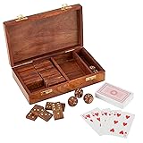 COLE WHEELER Tabletop Game Box Set, Deal Place & Roll, (Cards, Dominos and Dice) with Mango Wood Storage Box, Gift for Game Enthusiasts