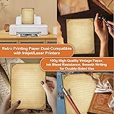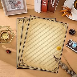 - Letter size 8.5" x 11" loose leaf old looking paper set including 50 sheets. The double-sided printing of vintage paper looks more authentic. Much more parchment looking without seeing through. Old rustic lined(standard rule) design with a unique border on the front and a blank vintage design on the back.The unpunched refills parchment writing paper is suitable for ring binder, discbound notebook or planner inserts. Vintage printer paper compatible with Filofax Organizers & Clipbook, TUL, Martha Stewart, Levenger Arc, Junior Levenger, Talia etc.Stationery vintage cardstock with 100gsm premium smooth paper for easy writing. Heavy-weight, acid-free paper avoid ink bleed through. Parchment paper is light enough in color for writing, suitable for fountain pen, gel pen, roller pen, ballpoint pen, highlighter, pencil, neutrals and etc, all write smoothly on this rustic paper. Parchment paper for printing compatible with both inkjet and laser printers. You can easily print on this parchment paper.It is not only old paper for letters, but also parchment printer paper perfect for weddings, anniversaries, graduations, announcements, pomes, crafting, pirate scroll paper, treasure map paper, and more! Premium quality ensure no matter how you use it, it will look great. Also suitable for party invitations, greeting cards, wedding vows, or heartfelt handwritten letters