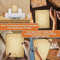 STATIONARY PAPER - Letter size 8.5" x 11" loose leaf old looking paper set including 50 sheets. The double-sided printing of vintage paper looks more authentic. Much more parchment looking without seeing through. Old rustic lined(standard rule) design with a unique border on the front and a blank vintage design on the back. UNPUNCHED OLD PAPER - The unpunched refills parchment writing paper is suitable for ring binder, discbound notebook or planner inserts. Vintage printer paper compatible with Filofax Organizers & Clipbook, TUL, Martha Stewart, Levenger Arc, Junior Levenger, Talia etc. PREMIUM VINTAGE WRITING PAPER - Stationery vintage cardstock with 100gsm premium smooth paper for easy writing. Heavy-weight, acid-free paper avoid ink bleed through. Parchment paper is light enough in color for writing, suitable for fountain pen, gel pen, roller pen, ballpoint pen, highlighter, pencil, neutrals and etc, all write smoothly on this rustic paper. Parchment paper for printing compatible with both inkjet and laser printers. You can easily print on this parchment paper. DECORATIVE WRITING PAPER PERFECT FOR - It is not only old paper for letters, but also parchment printer paper perfect for weddings, anniversaries, graduations, announcements, pomes, crafting, pirate scroll paper, treasure map paper, and more! Premium quality ensure no matter how you use it, it will look great. Also suitable for party invitations, greeting cards, wedding vows, or heartfelt handwritten letters GUARANTED - As an integrity and reliable seller, we promise to provide good quality products as well as excellent service to our customers. If you have any questions, please contact us first, we will solve your problem quickly and effectively.