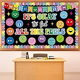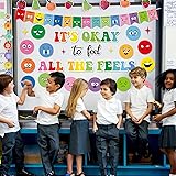 Package includes: The feeling bulletin board decorations set consists of 15 pieces of emotion feeling theme bulletin board cutouts, 5 pieces of stars, 15 pieces colorful banner cutouts, 7 pieces of letter cutouts "IT’S OKAY to feel ALL THE FEELS," 16 pieces of colorful rainbow bulletin board borders and 4 sheets of adhesive dots, making it an eye-catching and lively addition to any room or space. Exquisite design: Featuring the phrase "IT’S OKAY to feel ALL THE FEELS," this emotion feeling bulletin board reassures students that all emotions are valid and part of the human experience. Surrounded by expressive emotional faces representing different feelings such as happiness, sadness, anxiety, anger, and excitement, this visual display helps students identify and verbalize their emotions. Premium quality: Crafted from durable card stock, these mental health bulletin boards are sturdy and tear-resistant, ensuring long-lasting classroom decorations. The glossy finish ensures vibrant colors, making these back to school cutouts designs a reliable addition to your learning classroom decorations that can withstand everyday classroom use. Easy to use: This back to school bulletin board set comes with 4 sheets of adhesive dots, allowing you to quickly and easily apply the inspirational wall art cutouts to your classroom walls, doors, windows or bulletin boards. No messy tape is required—simply peel and stick to create an inspiring and lively mental health themed classroom in no time. Wide applications: Ideal for a variety of spaces, this positive quotes wall decor is ideal for therapy offices, counseling offices, classrooms, schools, social worker spaces, counseling offices, special education, school hallways, and wellness centers. The colorful design makes it versatile enough to complement a wide range of interior decor, adding positivity and inspiration wherever it’s displayed.