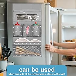 Two-Sided Independent Use - Innovative detachable design! The mini fridge organizer two sides are connected by removable hook-and-loop fasteners, allowing single-side use when the fridge is against a wall Perfect Fit Dimensions - Fits mini fridges with top length ≤18". The over mini fridge storage has a total of 14 pockets and a kitchen paper fixing rope. The pockets include 6 small pockets, 4 medium-sized pockets, 2 large pockets, and a menu specific pocket on the back Space-Saving Design - Hangs vertically to utilize dead space. Reinforced tall pockets hold bottles upright—30% more capacity than flat organizers All-in-One Organizer - This over mini fridge storage can store storage items from kitchen spices to office supplies—wipe-clean waterproof oxford fabric adapts to any space. Applicable scenarios from school to office to home Instant Installation - Installation only requires three steps. The first step is to clean the refrigerator, the second is to tear off the adhesive backing of the hook-and-loop fastener and stick it on the refrigerator, and then stick the hook-and-loop fastener on the mini fridge for dorm and the refrigerator together