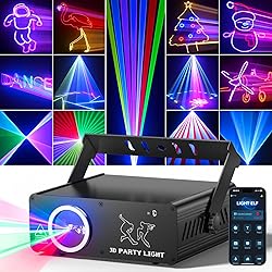 KeoBin APP DJ Laser Lights Professional - 200+ 3D RGB Animation Laser Light Show, Hand Drawing, Custom Patterns, Sound Actived & DMX Sync for Party, Stage, Club