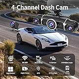 - 4 Channel Dash Cam FHD 2K+1080Px3, 170°+2x150°+170° Wide Angle, 8 IR Lamps Night Vision, 5G WiFi, GPS, APP Control, G-Sensor, Loop Recording with 64GB Card