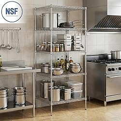 - Strong & Reliable: Holds up to 600 lbs, perfect for heavy items like inventory, equipment, or supplies — great for hotels, cafés, stores, or even home use.Built to Last: Made from tough, chrome-plated metal, this shelf can handle daily use in busy kitchens, warehouses, or homes.Adjustable & Flexible: Easily adjust the shelf height to fit items of all sizes — perfect for organizing kitchen gear, retail products, or household essentials.Breathable Design: The open-wire structure boosts airflow, reduces dust, and keeps items clean — ideal for food storage, delicate equipment, or pantry organization.Quick & Easy Setup: Comes with 4 pairs of split sleeves for a tool-free assembly. Snap the sleeves onto the posts, slide the shelf into place, and start organizing right away.