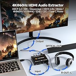 ✅ HDMI to RCA & Optical Audio Extractor: This HDMI audio extractor helps convert HDMI audio to RCA (L/R) analog or optical (SPDIF) outputs, allowing you to connect an external sound system, speaker, or home theater. Perfect for gaming consoles, Blu-ray players, streaming devices, and more ✅ HDMI ARC Audio Extractor for Smart TVs: Extract TV audio via HDMI ARC and send it to external speakers, AV receivers, or soundbars using the optical (SPDIF) and L/R audio output. Note: Supports ARC, but not eARC ✅ 4K@60Hz Resolution with HDR Support: Enjoy stunning 4K resolution at 60Hz (YUV 4:2:0) with support for HDR, 1080P, and 720P. Works with HDCP 2.2/1.x devices, ensuring smooth compatibility with TVs, projectors, and monitors ✅ 5.1 Audio Downmix & EDID Management: Downmix standard 5.1 audio to stereo output, making it compatible with older speakers. The EDID switch (TV, 2CH, 5CH modes) ensures seamless communication between your source device and display, reducing audio/video compatibility issues ✅ Free Lifetime Technical Support: All J-Tech Digital products include a one-year manufacturer replacement warranty and free lifetime technical support from our customer support team located in Stafford, TX. Support is available from 9AM – 6PM CST, Mon – Fri. Contact information available on our seller page