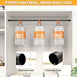 - Tool-Free Continuous Adjustment: This upgraded telescoping closet rod features seamless length customization to perfectly fit any space - from compact wardrobes to walk-in closets. No cutting required, zero gap design ensures instant precise sizing for any closet configuration Heavy-Duty Construction: 1.3" diameter heavy duty closet rod withstands up to 66 lbs without bending. Adjustable closet rod features rust-resistant coating and textured matte finish that prevents clothing slippage while resisting scratches and corrosion Sturdy U-Shaped Brackets: 1.9"x2.3"x0.9" industrial-grade metal brackets outperform plastic alternatives. Integrated locking screw secures rod position, eliminating slippage while allowing quick disassembly Quick & Easy Installation: Closet rods for hanging clothes complete hardware kit includes dual-length screws (wood/tile/cement compatible). Simple 3-step setup: Mount brackets → Connect closet poles → Tighten security screws. Suitable for indoor/outdoor use on various surfaces including drywall, wallpaper, and concrete Multi-Functional Space Solution: Beyond closet organization, this adjustable closet rod also can be used as laundry room drying rod, room divider, curtain rail, shower curtain rod, RV storage bar, or window security lock. Matte black finish blends seamlessly with modern and traditional décors alike