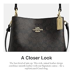 Editor's Notes: Our spacious polished pebble leather Town bucket bag is an essential style featuring a snap closure, internal zip pocket & long strap for versatile wear Our Signature Canvas: The best kind of mix up. This rich, mixed leather design combines smooth leather with our signature canvas - for a sophisticated Coach bag Style Three Ways: Carry this versatile bucket tote by the top handles or attach the long crossbody strap to style to as a shoulder bag or crossbody bag It's All in the Details: Center zip compartment, Snap closure, Handle with 6 3/4" drop, Detachable strap with 22" drop for shoulder or crossbody wear. 8 1/2" (L) x 8 3/4" (H) x 4" (W) This is COACH: Having the courage to be real since 1941. COACH is the Original American House of Leather - with a legacy of craft and a community that champions the courage to live authentically