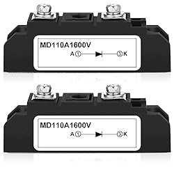 Package Contents: you will receive 2 pcs MD 110A-16 solar diode, This model is anti-reverse diode MD 110A-16; To prevent backfeed; Also called blocking diode; Peak voltage 1600V; AC < 400VAC; DC 3-1000VDC Current: Solar Cells and Solar Panels 12V 24V 48V Note: Because it is commonly used in solar energy and photovoltaic power generation, and is often paired with solar cells and solar panels, some customers might refer to it as a "solar diode."Using four diodes together can act as a rectifier bridge Attention: the higher the temperature, the worse the effect may be, Note: Therefore, when using diode, please avoid contact with high temperature conditions to avoid damage to the diode Common in Life: the frequency of use of our diode in life is also relatively high, when you need it, it can be very convenient to help you solve your work