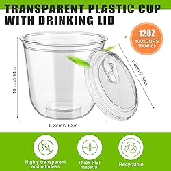 Convenient 100 Pack Cups with Lids: With 100 clear plastic cups and 100 strawless sip lids in each package, you'll have ample supply for any event. Designed to meet your daily party or business needs, these cups offer a practical and hassle-free disposable solution Quality PET Material: Crafted from high-quality PET material, these 12oz clear disposable glasses are durable, lightweight, and recyclable. They provide a safe, friendly option for all your beverage needs without compromising on style or function Strawless Design: Enjoy effortless sipping with our lid design featuring a convenient hole, nice for pearl milk tea and other drinks. Experience minimal spills and optimal sipping ease while reducing your straw dependency for a more eco-conscious choice Stylish U-Shape Design: Designed with a sleek U-shape, these cups are both aesthetically pleasing and comfortable to hold. The sturdy, thickened bottom ensures stability, making them nice for any setting—whether you're at home or outside Versatile Use: Ideal for iced coffee, smoothies, milkshakes, and more, these disposable glasses cater to a wide range of cold beverages. They're suitable for coffee shops, tea stores, fast food outlets, and a variety of special occasions, from weddings to picnics