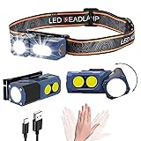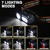 【Flashlight & Searchlight】 With a unique rotatable lamp head design, it can be rotated to the side as a flashlight, turned to the front to illuminate the front together with the COB light, or swiveled downward to light the path below while the COB light shines ahead. It offers multiple uses and angles for free adjustment. 【7 Lighting Modes and Motion Sensor】7 modes: flashlight white high/flashlight white low/ COB white/COB+flashlight white/COB+flashlight strobe/COB red/COB red strobe. In any mode, you can short press the motion sensor button(wave hand logo) into the motion sensor mode. You can easily turn the light on or off by waving your hand, freeing your hands to focus on other things, providing you with the convenience you need for use in the dark.You could short pree the normal mode button to turn off the light when over 15s no operation. 【Rechargeable and IPX4 Waterproof】Built-in 1200mAh large-capacity rechargeable battery, easily rechargeable via USB C. The powerful headlamp can support long time outdoor activities when fully charged, giving you longer lighting time and easier charging experience, (USB C cable included). This headlamp also has an IPX4 waterproof rating, making it safe to use in rainy or snowy weather, indoors or outdoors. It's an ideal choice for outdoor enthusiasts. 【Lightweight and Adjustable Comfort】The hand-free headlamp uses a comfortable, breathable elastic headband, which is removable, washable. The headband can be easily adjusted in length to perfectly fit your head size. Weighing only 2.96 ounces, you can always fold it up and put it in your pocket for easy carrying. At the same time, the lamp head can be adjusted up and down 45°. Just tilt it slightly downward to easily illuminate the road ahead of you in the dark. 【Bottom Magnet & Rotatable Work Light】 The bottom magnet design, combined with a rotatable lamp head, is suitable for various hands-free work scenarios. Simply attach it to a metal surface to free your hands and work with ease. 【Versatile functions, transform at will】Equipped with a hat light clip and a bicycle light holder, it can be transformed into a hat light and a bicycle headlight at any time.