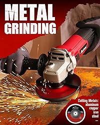 Powerful Grinder Tool, No Excessive Vibration: Equipped with 6.5 Amps motor with 750W max output power, this metal grinder can produce no-load speed of 11500 RPM, well-balanced, for most light duty HOME projects Essential Wheels Are Included for Cutting/Grinding Metal: This electric grinder comes with 2 cutting wheels, 2 grinding wheels. By purchasing separately flap discs and diamond discs, it can be used for tiles/stones/concrete/marble/granite Screw-on Guard for Safety & Side Handle for Added Control: Wheel guard can be adjusted with screwdriver (NOT included) to angles to prevent from injury. 2-position handle is friendly for left & right hands to grip. Side grinder weighs only 3.20lbs, less fatigue & comfortable in prolong use Universal Size & Easy Wheel Changes: This 4-1/2 inch grinder tool has a 7/8” arbor with 5/8”-11 threaded spindle, compatible with wheel discs of most brands. Integrated spindle lock on the disc grinder is for quicker & easier wheels replacement Replacement Carbon Brushes Readily Available to Extend Service Life: Since Our grinder is equipped with brushed motor, replacement brushes are ready for the condition that old brushes are worn out. Recommend to let a qualified repair man to replace