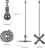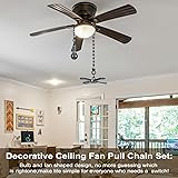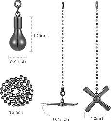 What’s Inside: Score two rad ceiling fan pull chains - one for powering up the fan and another for flipping on the light. Made from durable heavy - hitting metal, built to last. The matte black finish gives them a sleek look sure to turn heads. Perfect weight, won't flail when the fan's spinning fast. Best part: Each has a fan or bulb shape, so no more wrong switches! Sturdy, and Install in a Flash: These 12 inch ceiling fan pull chain extenders come with a 1 inch connector. If they’re too long, you can cut to right size with scissors, making it super easy to detach the chain. Works Everywhere, Every Time: Whether it’s the bedroom where you crash, the kitchen where you cook up a storm, those hard-to-reach closets, the living room where you binge-watch, or the fan on your backyard patio or in your RV, these pull chains are the ultimate solution. They’re also awesome as lamp pull chains. Add extra oomph of style to your place. Swap and Extend with No Hassle: Perfect for replacing worn-out pull chains or giving your existing ones extra length. Putting these in is a breeze, they perform like a dream! The “classic” aesthetic isn’t over the top but definitely amps up the look of your fan. It’s the ultimate blend of style and practicality! An Essential for Every Household: Whether your family’s needing a quick fix, guests are fumbling with the fan, or you’re settling into a new crib, these pulls with their obvious fan and light icons have your back. No more pulling the wrong chain ever again! And they’re solid 365 days a year - whether it’s scorching hot or freezing cold outside, these pull chains are always on fleek.