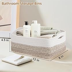 Soft and Firm Storage Baskets for Organizing: Handwoven with natural cotton rope, chemical-free and safe for kids and pets. Soft edges protect furniture and floors, ideal for families with babies, toddlers, or pets. Mini Decorative Basket: Dual color options for every style, choose from elegant neutral tones (gradient brown) or vibrant rainbow hues to match your home decor. Perfect as a decorative basket or functional organizer. Compact & Space-Saving: Dimensions: 12"L x 8"W x 4.5"H cotton rope basket. Designed to fit on shelves, in closets, under beds, and even desks, these rectangle small baskets are ideal for organizing your home or office. Collapsible design folds flat for easy storage when not in use. Versatile Multi-Purpose Use: Organize toys, books, towels, baby essentials, cosmetics, socks, jewelry or office supplies. Built-in handles for easy carrying and portability. Additionally, storage baskets for shelves are simple and beautiful, they also can be as lovely and practical gifts for friends and family. Warm Tips: To ensure the storage basket is optimally transported and protected, the product arrives in a folded state. To restore the organizer basket's shape, you can fill it with blankets or fabric and wait 12-24 hours, or gently iron it for half an hour.