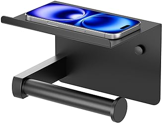 Flexible Installation Options: Two easy installation methods. 1. Self-adhesive option for an easy stick-on application without drilling for smooth surfaces. 2. The wall-mount option with the included hardware you can install toilet paper roll holder in minutes for your customize placement based on your needs Durable SUS 304 Stainless Steel: Crafted from premium SUS 304 stainless steel, this toilet paper holder with phone shelf is designed for longevity. It is resistant to rust and corrosion, ensuring it remains beautiful and durable in humid environments Large Phone Shelf Design: FORIOUS toilet paper holder wall mount top features a deeply curved edge that securely cradles your phone, small plants, air fresheners, wipes, or perfume, nothing slides off. Integrated knobs keep paper rolls perfectly in place, and each edge is carefully polished and sanded,without sharp edges Stylish & Modern Design: The modern aesthetic of our toilet paper holder complements any bathroom décor and keeps your space organized and tidy. Designed for visual harmony, it integrates flawlessly into your space, elevating the overall aesthetic with its clean lines and refined presence Fits Mega Rolls Perfectly : Upgraded the space of the bathroom toilet paper holder by widening the gap between the wall and the paper roll rod, ensuring easy accommodation of most large rolls on the market for added convenience