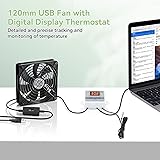 ELUTENG USB Fan 120mm with Digital Temperature Controller, 5V USB Powered PC Computer Fan 1500RPM 3 Adjustable Speeds Electronic Cooling Lufter with Metal Grill for Laptop/TV Box/AV Cabinet/PS5/Router