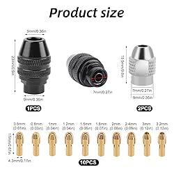 Package Includes:This set includes 15 pieces, including 4486 drill chuck, 10 brass collets in sizes 0.5–3.2mm, and a durable M8 metal collet nut, offering a complete solution for various rotary tool needs. Premium Material:The 4486 drill chuck is made of high quality alloy material, providing a sturdy, one piece design with a built in spring structure for enhanced stability and long-lasting performance compared to plastic models. Versatile Brass Collets:The set includes 10 precision brass collets (0.5–3.2mm) that provide a firm grip on drill bits. These durable brass collets resist bending, ensuring strong and reliable performance during use. M8 Metal Collet Nut:The all metal M8 collet nut is made of durable alloy steel, offering improved accuracy, wear resistance, and strength compared to plastic nuts, ensuring a more efficient and precise operation. Widely Used:This drill chuck collet set is compatible with most 4486 rotary tools and a variety of other power tools, including electric grinders, drills, engraving machines, and polishing tools, for versatile use.