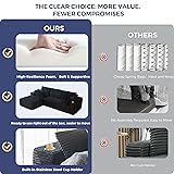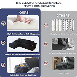 Modular Titan L Sofa Couch: The Modular Titan L Sofa Couch adopts modular splicing structure. Each module is individually moulded and can be split or combined at will, making it easy to cope with changes in space. Whether it's a compact flat or an open-plan living room, the layout can be adapted to utilise the space, which is convenient for you to read books, play games, watch TV and other leisure activities No Assembly Required: No assembly required, after opening the package, place it in a ventilated and dry environment, wait for about 72 hours or so to be able to return to its original shape, meanwhile, gently pat each part to improve its elasticity and luster, you can enjoy a comfortable experience! Handy Cup Holder & Side Pockets: The embedded cup holder design at the armrest makes it easy to hold a drink at your fingertips, so you don't need to leave your seat when watching a film or reading a book. Side invisible storage pockets cleverly integrate practical functions, can store magazines, remote control, eye masks, etc., always keep the space neat and orderly Oversized Sectional Sofa: The total width of the boneless sofa is 104 inches, which means unlimited possibilities of luxurious space for family movie watching, gathering with friends, or spending time alone, and the size of the L-shaped section allows for a natural stretching of the legs to be transformed into a sofa bed for an afternoon nap High-resilience Foam Filling: The sectional couch is filled with whole piece of high-density elastic sponge inside, providing good support and enjoying a cloud-like comfortable sitting experience. Backrests and pillows provide lumbar and neck support to relieve fatigue, relax your body and experience a relaxing rest time. The handmade tufted button craft highlights a light luxury texture and embodies the aesthetic of home comfort