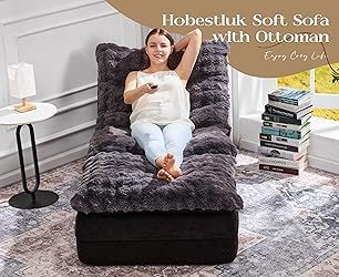 Unrivaled Comfort & Softness:Hobestluk sofa couch with footrest combines solid foam and shredded sponge to provide both supportive and soft. This sofa chair creafted from luxurious fluffy fabric which is incredibly durable and ensuring a plush, cloud-like seating experience. Whether you're lounging, reading, or napping, this small couch is designed to cradle your body in pure comfort. Easy Cleaning: The seat cushion and the cushion part of the sofa chair are connected by zippers and can be easily detached. The outer cover is machine - washable, making it convenient for you to clean regularly and keep the bedroom sofa clean and tidy. Multi-functional Ottoman: Designed with relaxation in mind, Hobestluk small couch with ottoman comes with a matching ottoman, it also can be used as a side table or stool. The footrest of our floor sofa is fully movable, allowing you to adjust it to your perfect position for a fully customizable comfort experience. No Assembly Needed: The lounge sofa is already pre-filled with memory foam and the cloud couch will be packed in vacuum bag. When you receive the sofa couch, just remove the box and outer plastic bag, then let it stand for about 24-72hours, let the foams in the floor recliner couch restore elasticity. You'll soon get a comfortable sofa. Versatile Usagese: Enjoy your rest time with Hobestluk comfy chaise lounge chair! This floor sofa chair is perfect modern home accessory to add a touch of fun to your living room, bedroom, dorm room or gaming room. The comfy chair is a great size for both littles and adults. It is the perfect ideal for sitting, napping, and lounging.