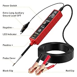 Car Circuit Tester: This professional 12 volt test light is applicable to the diagnosis of electrical systems of various vehicles such as cars, motorcycles and trucks within the DC voltage range of 6-24V. Powerful in function, it supports various experiments such as circuit polarity testing, continuity, short-circuit tracking, component activation, and grounding test, making complex circuit problems nowhere to hide. Circuit Positive & Negative Detection: The metal probe at the front end of the power circuit probe tester can quickly identify the charge and polarity of each unknown contact point on the car circuit. Quickly identify the current state of the car circuit and ensure the safety. A red indicator light indicates a positive charge +, and a green light indicates a negative charge -." Continuity Testing: The electrical tester continuous testing can be used to check whether there are any open circuits or poor contact faults in automotive components, such as whether the fuse has blown, and whether the connection of switches and relays is good. The test has sufficient safety and will not cause any damage to sensitive components (such as ECU, sensors, etc.). Component Activation: This auto circuit tester can be connected to a circuit to quickly control or activate specific components, such as starters, fuel pumps, cooling fans, headlights, blowers, etc. When defects are found in the components during the inspection process or the rated current of the parts is higher than that of the vehicle test light, a buzzer will sound as a prompt. Safety & Toughness Structural: The 12 voltage test pen shape is fluent, accord with human body engineering design. It's surface adopt cutting-edge ABS material, very soft and sweat-absorbent! The edge of the handle is designed to fit perfectly in the palm of the hand, so it can be easily held and not easily slipped off. The tester is also equipped with a 4 m long cable, which can easily test the whole vehicle range of circuits.