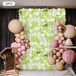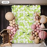 Josbuynls Flower Wall Backdrop, 12Pcs Artificial Flower Wall Panel 15" X 15" Reusable Artificial 3D Silk Rose Hydrangea Floral Panel for Wedding Party Event Photo Backdrop Wall Decor (Type 2)