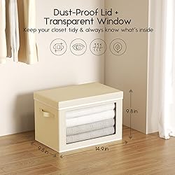 [Durable & Foldable Design] Homsorout collapsible bins are crafted from strong, non-woven fabric. These foldable storage cubes save space when not in use, ideal for organizing hats, clothes, or other items in your closet or home office. [Clear Bins with Lids for Easy Visibility] These clear bins with lids feature a transparent window, providing quick visibility of contents. Great for organizing clothing, hats, towels, or office supplies while keeping them secure and dust-free. [Stacking Storage Bins for Maximum Efficiency] Stackable design maximizes vertical space, perfect for organizing baseball caps, clothing, or other items. Keep your closet, living room, or office tidy and organized with these stacking storage bins. [Versatile Storage Solution] Storage cube bins are perfect for any room—use them for clothing, hats, or office supplies. Keep your space clutter-free and organized with this versatile storage solution for closets, bedrooms, or offices. [Easy Handles] Measuring 14.9" x 9.8" x 9.8", these storage boxes with lids are just the right size for storing baseball caps, shoes, and other essentials. Equipped with sturdy handles for easy portability and quick access to your belongings.