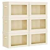 Homsorout Collapsible Storage Bins with Lids - Stackable Storage Containers with Window, 6 Pack Fabric Organizing Bins for Closet, Home & Office Organization Baskets, Beige, 14.9" x 9.8" x 9.8"