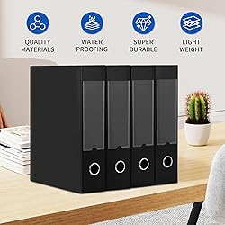 WORPSON Plastic File Box Archive Storage Case with Lid, 12.2" × 9.4" × 2.2", Letter & A4 Paper, Office Document Organizer Case (Black, 6)