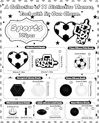 - 102PCS FIVEIZERO Black & White Focal Silicone Beads for Keychain Making – Football, Round, Lentil, Hexagon & Rhinestone Spacer Beads for Pens, Bracelets & DIY Crafts (Sports Style)
