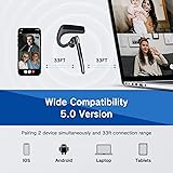 Long Battery Life -- Built-in 500mAh battery, which provides 110 hours play time, 100 hours talking time and 90 days standby time after fully charged. Fully charged only need about 3 hours.Ideal for mobile professional who relies on mobile phone for on-the-go communication Dual microphone clear communication -- Kelazola bluetooth headset features ENC technology and combines 2 built-in HD microphones and high-quality speakers which can effectively block most ambient noise without missing any single conversation details and the call sound will be more transparent.Whether you are in a busy central area or on a truck, callers can seamlessly communicate with you like face-to-face, making it the ultimate choice for remote workers FASTER BLUETOOTH CONNECTION - Bluetooth headset with microphone is equipped with the latest Bluetooth 5.0 and is compatible with most Bluetooth devices such as iOS or Android cellphones, computers, PC, laptops, and more. This headset with mic allows you to connect to 2 devices at the same time and provides a seamless, stable connection from up to 33 feet away (without signal loss or music dropouts). This means you won't miss any important conversations with your callers Comfortable Fit Design -- This wireless earpiece is designed to fit in wide range of both ear shapes.Flexible rotatable ear hook and boom mic and rotates for a comfortable fit.The angle can be adjusted ly and will be worn stably.This headset come in three sizes with a total of six earplugs for a perfect fit on each ears. No more burden on ears even after wearing it for a long time.The earpiece are widely compatible with IOS/Android system devices and most devices Hands-Free Call & Mute Function--This bluetooth earphones specially designed for calls,allows you to easily answer, end or reject calls,freeing your hands.Besides,the main button on the bluetooth earpieces can also activate Siri. The volume keys have mute function.During important business meeting,when there is an incoming call, you can activate the mute function at any time when answering, to prevent the other party from hearing, to protect your company's secrets, then continue the meeting.Please feel free to purchase it with confidence. If there is any issue with your order, please don't worry, we will solve it for you in a timely manner within 24 hours
