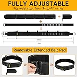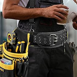 Adjustable Tool Belt: The tool belts for men fits waists 34'' to 47''. It is equipped with a removable extended belt pad, which is flexible to use, so that you can always have a comfortable waist pad to protect you no matter how you adjust it. (Note: Only belt and belt padding, pouch not included) 4-Inch Padded Tool Belt: If you’re working with heavy tools, you need a padded waist belt that will hold your tool pouches and provide all-day comfort;The upgraded 4-inch wide belt pad has a thick breathable mesh, which is comfortable and breathable,and provides sufficient waist support to minimize waist pressure and fatigue Heavy Duty Belt: This utility belt is made of heavy-duty tear-resistant and wear-resistant nylon fabric, which is reinforced and stitched for higher strength. Equipped with dual metal roller buckles, the steel hardware is more sturdy than ordinary plastic buckles, allowing you to easily cope with various harsh environments Suspender Hook Up Point: This work belts comes with 5 metal D-rings specially designed for tool suspenders which compatible with most 4-point suspenders on the market. Use this belt with a suspenders to make your work more comfortable. (Note: suspenders not included) Utility Belt: This belt fits for most four point suspenders, holsters, pouches, tool bags, etc..Great for electricians,construction, carpenters,framers,plumbers,handymen, DIY enthusiasts,etc.A unique gift tool belt for men,fathers,husbands