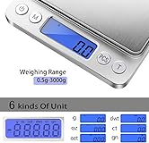 - 1. This digital pocket scale 3000g x 0.1g ensures precise measurements for jewelry, baking, and herbs. Compact and portable (5*4*0.6 inches), it's perfect for on-the-go weighing. 2. Mini digital scale (5*4*0.6 inches) is lightweight and easy to carry. Ideal for travel, home, or office use, this portable weighing scale provides accurate and reliable measurements anytime. 3. High-accuracy gram scale for jewelry, food, herbs, coins, and spices. Whether for kitchen, baking, or scientific use, this precision scale ensures consistent, reliable results every time. 4. User-friendly small digital scale with easy-to-read LCD display and tare function for accuracy. This battery-operated scale offers quick, precise measurements with simple, efficient controls. 5. Durable and battery-powered digital scale built with high-quality materials for long-lasting use. Perfect for home, travel, or workshops, delivering everyday precision weighing with ease.