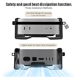 Precise Size:This Mac mini M4 mount is designed to fit the 2024 Mac mini M4 or M4 Pro. Compatible with VESA standard connector: 75mm×75mm .Mount size: 134 x 134 x 50.5mm / 5.27 x 5.27 x 1.98 inches. and fits your M4 perfectly. Ventilation Design: four sides retain vents. Efficient ventilation prevents overheating. Whether mounted behind the monitor, under a desk, or on a wall, it provides excellent heat dissipation. Important: If the Vesa bracket is mounted on the back of the computer/monitor, a monitor stand or bracket is not allowed. Additional Vesa extension panels are required for compatibility. Save Space: A new desktop solution for better cable management. This mac mini stand supports Micro Mount, Wall Vesa and Under Desk Mount, and its precise design ensures that ports and cables are unobstructed and don't overhang ports, so the Mac mini M4/M4 Pro power button, output jacks, and cables remain unobstructed during daily operation. Easy To Install: You can install it in just 10 minutes, we have everything you need during installation and use in the package. Including: one 134 x 134 x 50.5mm bracket, four M4*12 Phillips screws, four M4*16 Phillips screws, four M4*12 self-tapping screws, four M4*28 self-tapping screws, one Phillips screwdriver, four Two Velcro straps, four Non Slip Pads and installation instructions. The VESA mounting bracket is made of high-strength metal to provide enhanced protection. The monitor mounting bracket is anti-theft as there are two replacement anti-theft bars (lock not included). Protect your Mac-mini M4 2024 from theft or random movement!