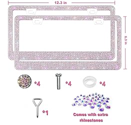 - Bling License Plate Frame Stainless Steel Rhinestones Car Accessories with 1200 Crystals, Universal Fit Decorative Diamond Plate Covers for Women Men All Cars