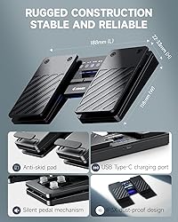 [Free Your Hands For Multi-tasking] Effective range up to 10 m/33ft via Bluetooth 5.0 connection and adapt to multiple systems and apps, allowing control of music, reading, scrolling lyrics, and media control, enhancing convenience and efficiency for various tasks. [Multi-mode Operation for Versatile Scenarios] Equipped with 5 page-turning modes and 2 Bluetooth connection modes, it supports commands such as page turning, scrolling, and simulating mouse clicks, ideal for music performance, reading, or presentations. [Wide Compatibility for Cross-Device Use] The page turner pedal adapts to multiple platforms, phones, tablets, Mac, PC and supports popular reading and music note book applications. [Long-Lasting Power] Features a built-in USB-rechargeable lithium battery that provides up to 80 hours of use on a full charge. Auto sleep when idle to save energy. [Durable Design for Reliable Performance] Adopts a dust-resistant design to reduce the impact of dust on internal circuits. The pedal structure is sturdy and resistant to stepping, ensuring stable operation on stages, in classrooms, or outdoors.