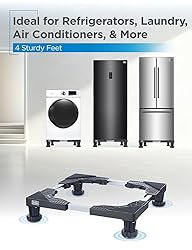 High Capacity Strength: 4 thickened square stainless-steel poles help support up to 700 lbs. to ensure stable support for heavy appliances including apartment refrigerators and compact washer or dryer Adjustable Dimensions: Adjustable to meet the dimensions of various appliances. Adjustable length and width from 16" to 24.38" for appliances like mini fridges and laundry pedestal uses Enhanced Stability: Comes with shock absorbing friction pads for corner surface support, this washer and dryer stand ensures reduced vibration and noise, perfect for maintaining balance Built-In Level Correction: Each triangular panel of the AC stand comes with a built-in level correction for precise alignment, transforming it into a portable AC stand or small refrigerator stand Sturdy Adjustable Feet: The portable air conditioner stand features sturdy adjustable leveling feet, adjusting from 4 to 4.6" H, ensuring stability across varied surfaces