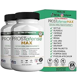 - Prostafense Max is a premium natural herbal formula designed to provide effective support for prostate health and urinary function. This advanced supplement blends traditional botanicals with modern science to help you maintain prostate wellness.Our unique proprietary blend features powerful ingredients such as nettle, reishi, saw palmetto, burdock, uva ursi, maitake, pumpkin seed, and pygeum africanum, combined with antioxidant-rich extracts including green tea, soursop, cayenne, and goldenseal. These herbs have been traditionally used to promote healthy prostate function and support normal urinary flow.*The formula is enhanced with essential vitamins E and B6, which work synergistically with the herbal ingredients to support overall male health.*Benefits of Prostafense Max include:Natural support for prostate and urinary health*Helps maintain healthy urine flow*Rich in antioxidants to support immune function*Gluten-free, vegan, and non-GMO for a clean supplementManufactured in the USA with stringent quality controlsSuggested Use: Take two (2) veggie capsules once daily, preferably 20-30 minutes before a meal with an 8 oz. glass of water or as directed by your healthcare professional.Warning: Keep out of reach of children. Do not use if safety seal is damaged or missing. Consult your physician before use if pregnant, nursing, under 18, or with known medical conditions.