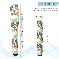 FRODOTGV Cute Mountain Dog Faces Flower Knee-High Hosiery for Women Elastic Long Boot Stockings for Ladies High Thigh Socks
