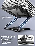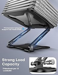 【Foldable & Ergonomic Design】: This laptop stand can be adjusted to a comfortable height and angle according to your actual needs, allowing you to maintain a comfortable posture, reduce neck fatigue/back pain and eye fatigue, and is very suitable for working at home, in the office and outdoors 【Sturdy & Protective】: The laptop stand is made of sturdy metal, and the top can withstand up to 8.8 pounds (4 kg) without shaking. The panel and its two hooks are designed with non-slip pads, and there are silicone pads on the top and bottom to fix the laptop and protect the device from scratches and sliding to the greatest extent. Only supports laptops up to15.6 inches. Moreover, smooth edges will never hurt your hands 【Ultra heat dissipation】: The top of this laptop stand has an unparalleled heat dissipation and ventilation effect. Compared with putting it directly on the desktop, it is more conducive to air circulation and effective heat dissipation, and continuously maintains the best performance and fast operation of the device 【Portable & Foldable】: The foldable design makes it easy for you to put it in your backpack. It is very suitable for people who travel frequently 【Wide Compatibility】: Our laptop stand is suitable for all laptops from 10-15.6 inches, and compatible with Macbook/Macbook air/Macbook Pro, Google pixelbook, Dell XPS, HP, ASUS, Lenovo ThinkPad, Acer, Chromebook and Microsoft Surface, etc. Become your ideal companion at home, office and outdoors ✅Quality & Support: Backed by a 24-month warranty and quality-tested, this laptop stand for desk ensures reliable daily use. We offer professional 1 to 1 customer support—If you encounter any problems when using this laptop stand, please send us a message through Amazon