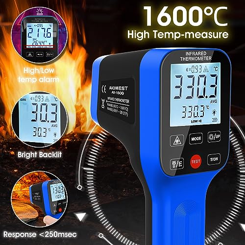 AIOMEST High Temp Thermometer Gun -58℉~2912℉, Pyrometer D:S=30:1 Dual Laser Industrial IR Temperature Meter w/Touch Buttons (NOT for Human Temp)