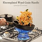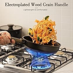 【Titanium Non-Stick Coating】 This pots and pans set features a titanium non-stick coating, ensuring food slides out effortlessly and cleaning is a breeze. The titanium coating effectively prevents stains and odors from accumulating, providing a cleaner cooking experience and extending the lifespan of the cookware. 【Heat-Resistant Handles and Glass Lids】 The electroplated wood-grain handles are ergonomically designed for a comfortable grip, heat-resistant, and slip-resistant. The shatter-resistant narrow-edge glass lids allow you to monitor the cooking process while effectively preventing food splatters, delivering a clean, splash-free cooking experience. 【Versatile Compatibility】 The pots and pans set is suitable for a wide range of heat sources, including induction, gas, and ceramic stovetops. It ensures that the cookware set is heated uniformly in a stable and efficient manner under all cooking conditions. 【Healthy Kitchen Cookware Sets】 Set Includes: 8“ fry pan, 9.5” fry pan, 2.5-qt saucepan with lid, 5-qt sauté pan with lid, 5-qt stockpot with lid, 5*pan protectors, silicone mat, and cooking utensil sets. This allows you to effortlessly handle meals from breakfast to dinner, meeting the cooking needs of the entire family. 【The Perfect Gift Choice】 Astercook offers a 12-month warranty for your purchase. Whether you're giving it as a gift to friends and family or using it yourself, we'll provide a satisfactory solution for any quality issues. It's the perfect gift choice for birthdays, holidays, or any special occasion.