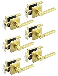 - Tinewa 6 Pack Gold Keyless Square Levers Handles, Satin Brass Finish, Non-Locking Interior Passage Door Lock Hallway/Closet Door Lever, Heavy Duty Door Handles