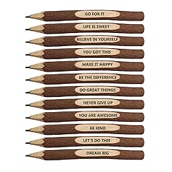 - 12 Pcs Natural Wooden Pencils, Hand Made, 5 inch Long. Designed in an attractive light brown color. Funny Positive Pens. Made of real branch with natural wood smell, the bark look is closest to the material itself, and bark pencils can last a long time. Rustic branch pencils are suitble for teachers and students classroom decorations, outdoor activitiesfor decorating home, living room, bedroom, outdoor and indoor parties, restaurant decoration, wedding decoration and so on. Thoughtfully Quotes: Each pencil stamped inspirational and appreciation quotes, making them more than just writing instruments – they spread positivity and gratitude. Perfect Teacher Must Haves and speech therapy gifts: Ideal for teacher encouraging pens and as school supplies. These Motivational Pens also make a thoughtful appreciation gift for teachers, coworkers, nurses, social workers and any awesome one you want to celebrate!