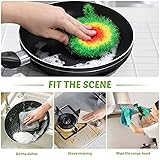 Hook Design: Sponges kitchen features a hook design at the top for easy hanging to dry, preventing it from developing a terrible smell due to prolonged dampness, kitchen towels Thickened Texture: Dish sponge towels has a thickened texture, making it highly absorbent and easily removing stubborn stains and dried food residue from dishes, countertops, and other surfaces, dish scrubber Bright Colors: Sponges for dishes cloth comes in bright, eye-catching colors, making it easy to spot in a busy kitchen environment and reducing the embarrassment of not being able to find the dishcloth while cleaning, dish cloths Polyester Fiber: Dish sponges are made of stable and reliable polyester fiber, the kitchen cloth is not easily worn or torn and can be reused for a long time, dish rags for washing dishes Versatile Uses: Dish washing scrubbers can not only be used for washing dishes but also for cleaning bathroom floors, washing cookware, bathtubs, and sinks, reusable kitchen washcloths