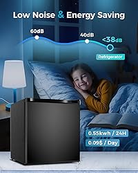 Compact Size for Any Space - Our 1.7 cu. ft. small refrigerator measuring just 17.5"(W) x 16.9"(D) x 19.1"(H), offers a space-saving solution for any room. Its compact dimensions allow for flexible placement in bedrooms, offices, dorms, classrooms, home bars, apartments, and RVs. Easily store and access your favorite food, soda, beer, and beverages, maximizing convenience without compromising on space Mini Fridge with Freezer - This mini refrigerator features an efficient 1.5 cu. ft. refrigerator and a 0.2 cu. ft. freezer for all your storage needs. With specialized compartments for bottles, cans, and a removable shelf, it allows for customizable organization of fruits, vegetables, snacks, and ice cream, making it perfect for family life. Enjoy easy access to your favorite foods and beverages in this compact and versatile refrigerator Adjustable Temperature Control - This dorm fridge offers a wide temperature range (32℉-50℉) for tailored storage. With 7 precise cooling levels, you can effortlessly optimize the temperature for drinks, snacks, or fresh produce. The user-friendly thermostat knob makes it easy to find your perfect setting, ensuring your items stay fresh and ready to enjoy whenever you need them Low Noise & Energy-Efficient - Operating quietly at ≤38 dB, our bedroom mini fridge maintains a peaceful atmosphere for study, relaxation, or work environments. With energy costs as low as 0.55 kWh (about $0.09 daily), enjoy tranquil lifestyles in dorms, kitchens, game rooms, offices, and study areas – saving on bills while eliminating disruptive sounds Flexible Placement & Reversible Door - Our small refrigerator with freezer delivers maximum versatility through adjustable feet and a reversible door. Seamlessly fitting under desks or on countertops, this space-saving solution excels in tight spaces. This practicality makes it an excellent addition to your home or a thoughtful gift for friends and family looking for a reliable portable refrigerator Shipping & After-sales - Every mini fridge arrives quality tested with fast, secure transportation guaranteed. We provide 1-year accessory maintenance service to ensure your experience remains exceptional. For any product questions, contact us freely – we'll deliver satisfactory answers to keep your satisfaction at the fullest extent possible