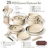 CAROTE 25PCS Ceramic Cookware Set, Pots and Pans set Non Stick, RV Kitchen Cooking Set Removable Handles, Oven Safe, Induction Cookware, Non-toxic Kitchen Cooking Set, PFAS and PFOA Free